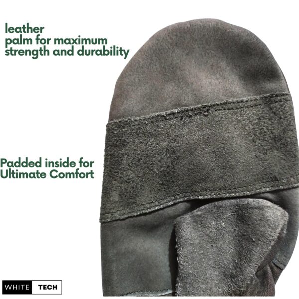 - Material: Heavy-Duty Double Layers Canvas Double Palm Reinforcement with a soft fabric lining inside for Rough use. Leather Mittens Durable and Protective: With a leather-padded palm and reinforced stitching throughout the gloves, you can be sure of ultimate durability and protection.