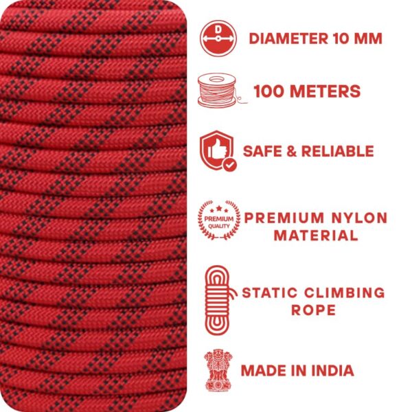 JS Defence Rock Climbing Rope (10mm 100Mtr) for Mountaineering & Rock Climbing, Rappelling Rope, Rescue and Safety